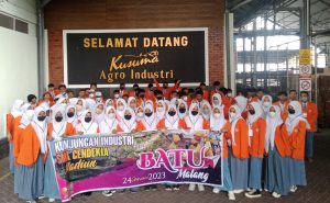 Jadi Kusuma Agro ini sebelumnya hanya UMKM yang dijadikan minuman selamat datang untuk tamu hotel, karena permintaan semakin banyak sehingga berkembang menjadi industri yang dipasarkan ke masyarakat luas. Pada kunjungan industri kemarin, peserta didik bisa melihat secara jarak jauh proses pembuatan sirup buah apel dan jambu yang dijelaskan secara detail pada bagian pemateri. Kenapa jarak jauh karena meninggat semua peralatan dan yang berada di pabrik tersebut telah seteril.